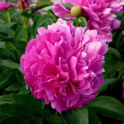 Описание куста впечатляет: мощный, раскидистый, он достигает средней высоты до 90 см. Сильные и прочные стебли делают его устойчивым к ветру, а темно-зеленые крупные листья добавляют кусту изысканности. Каждый куст пионов может нести до трех бутонов на одной ветке, что придаёт ему особенно густой и шикарный вид.