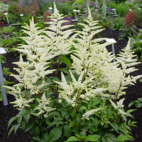 Астильба Браутшлейер из серии Arendsii — изящный сорт с выразительной структурой и снежно-белыми метельчатыми соцветиями. Идеальное решение для оформления притенённых участков, создания мягких цветовых переходов в многолетних композициях и живописного фона для контрастных культур. Цветение наступает в середине лета и остаётся декоративным даже после окончания сезона, когда соцветия приобретают лёгкий бежевый оттенок и продолжают держать форму.