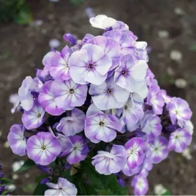 Листья у этого флокса имеют ланцетную форму и темно-зеленый цвет, что придает растению дополнительную привлекательность. Овально-конические соцветия отличаются крупным и плотным строением, что делает цветущие кусты особенно эффектными. Самым ярким моментом являются цветы с диаметром 2,5-3,5 см. Их воронкообразная форма и окрас в нежных сиреневых тонах с белой звездой в центре обязательно привлечет внимание и украсит любую клумбу. Слегка отогнутые вниз лепестки подчеркивают утонченность этого вида.