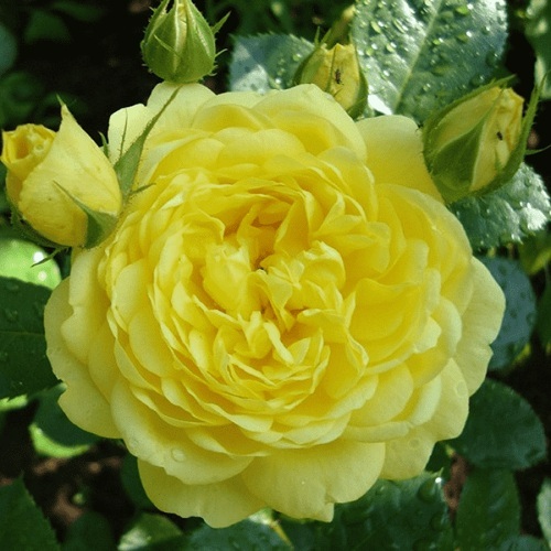 Цветок этой розы является настоящим произведением искусства. Днем он распускается в нежных молочно-кремовых оттенках, а к вечеру приобретает более насыщенный тон с серебристым отливом. Основная окраска цветка - желтая, а насыщенность цвета - яркая. Бутоны имеют форму помпона, а цветки отличаются романтической формой. Размер цветка крупный, диаметр составляет от 8 до 10 сантиметров. Количество лепестков в цветке достигает 85, что делает его густо махровым. Цветки располагаются в соцветиях, на каждом стебле обычно находится от 3 до 5 цветков. Соцветия считаются малоцветковыми.