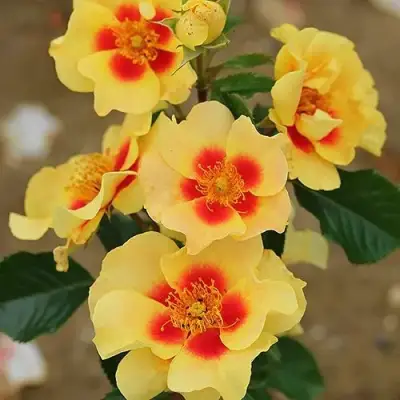 Каждая роза имеет от 8 до 15 лепестков и образует от 5 до 15 цветков на стебле. Их аромат слабый и приятный.
