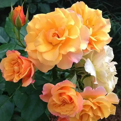 Цветок этой розы порадует вас своим ярко-оранжевым бутоном и масляно-желтыми цветками с оранжево-розовым оттенком. Основная окраска цветка - желто-оранжевая, а насыщенность цвета просто притягивает взгляды. Форма цветка чашевидная, а диаметр составляет от 7 до 8 сантиметров.