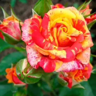 Куст "Файер Флеш" отличается аккуратной и компактной формой, его высота составляет примерно 70 см, а ширина может достигать 55 см. Листья растения имеют темно-зеленую окраску и глянцевую поверхность, что добавляет розе элегантности и привлекательности.