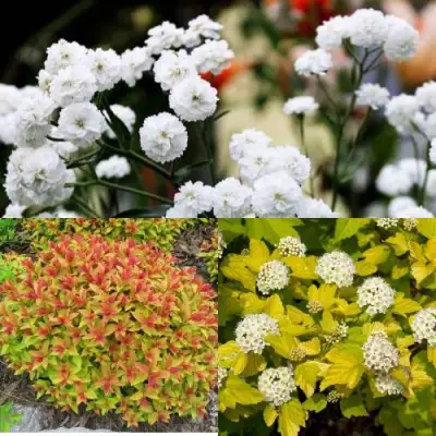 - Пузыреплодник «Дартс Голд» (2 года) – кустарник с густой кроной и листвой лимонно-жёлтого оттенка. Весной он сверкает ярким золотом, а к осени окрашивается в медово-оранжевые тона. Идеален для живых изгородей и как солитерный акцент.